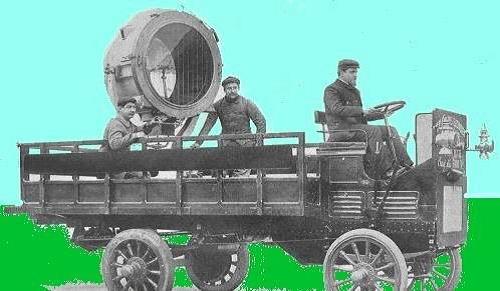 Of course, at night, it was difficult to see the aircraft and direct gunfire to them. Searchlights were used to help the gunners but it was difficult to ensure that the searchlight pointed quickly at the attackers. The searchlights were powered by electrical filament lamps or by acetylene gas hence were not very bright. The electric arc lamp was not invented until 1918.