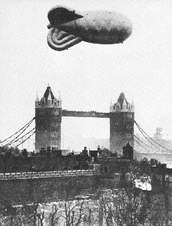 Rather late in the War the defence of London was enhanced by the use of barrage balloons. They were deployed during 1917 and 1918 and they became an important element in the air defence system by constraining the freedom of attackers to use all the airspace.